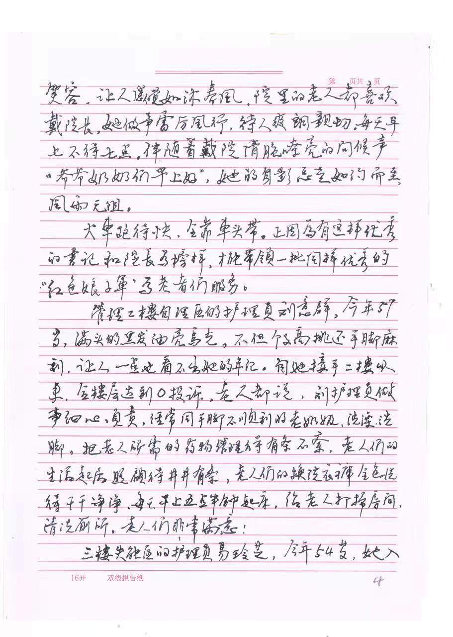 湘潭银v俩宝贝康养院里,有一支老h爱戴?/span>“娘子军”,光导是党支部书记周艳纯、院长戴?rn)和总部领导陈元同志。其成员有:(x)刘梦、陈杰、周q뀁林娥、汤惠兰、黄先群、钟桂南、易玲芝、刘意群、冯芟뀁成爱枚{十四h。她们在住院老者眼中,个个是女、个个是奌雄。她们不怕风Q不怕雨Q不怕苦Q不怕篏Q不白天黑夜,q死亡都不畏惧,她们是真正的“红色娘子军”,是真正的z雷锋。她们白天黑夜都在照护着住院老hQ早晨喊老h起床Q早ؓ(f)行动不便方的老h喂饭Q用有个别认知障碍的老hH然要大便甚至了(jin)裤子Q要q速地扶进厕所q行处理Q老者满意。有时晚上老者房里的呼叫铃一响,有个别老h大小便失,……马上要l老hz衣、洗澡、换被子Q精?j)地护理老h。还有些老h晚上H然(zhn)病Q要?qing)时?/span>120送医院急救Q诸如这cȝ问题Q几乎天天都有,随时都有可能发生Q银L(fng)娘子军都能不动声艌Ӏ圆满地解决q些问题?/span>