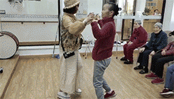 涓や漢铏芥槸鍏節(jié)鍗佸瞾鐨勯珮榫勶紝婊″ご閾朵笣錛屼絾浠嶇劧綺劇鐭嶉搫錛岀閲囧濂曘?5鏃ヤ笂鍗堬紝鑰佷袱鍙e湪濂沖効鐨勫甫棰嗕笅鏉ュ埌閾舵搗淇╁疂璐濈獞婀懼悍鍏諱腑蹇冨弬鍔犺妭搴嗘椿鍔ㄣ?/span>