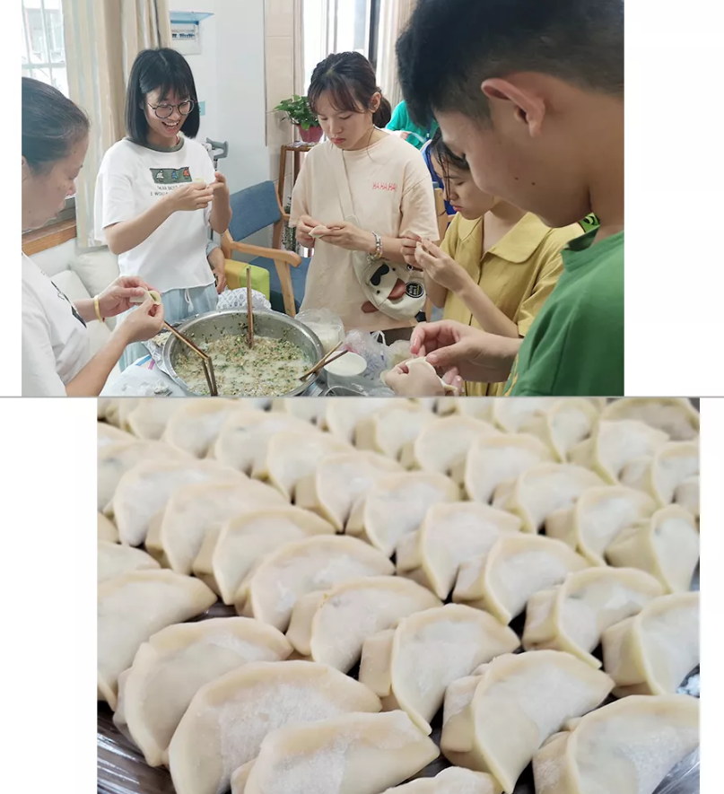 百忙中抽時(shí)間來(lái)幫志愿同學(xué)一起包餃子。