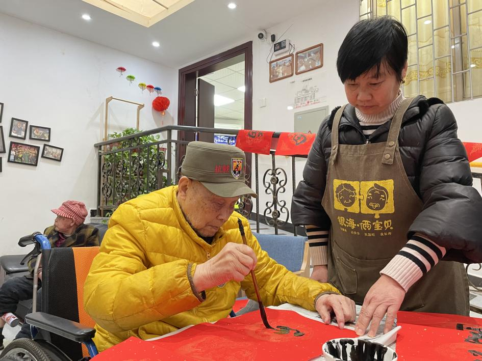 1月13日,銀海倆寶貝各長者之家內(nèi)舉辦了“寫福字、貼對聯(lián)、迎新春”活動。“書法家”老寶貝們和工作人員一起揮毫弄墨,為虎年新春的到來抒寫一份美好的祝福!