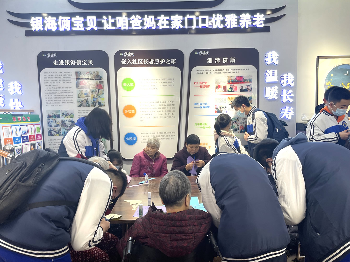 奉獻(xiàn)愛心,收獲希望。在3月5日這個(gè)特殊而又有紀(jì)念意義的日子里,湘潭市湘鋼一中初三級(jí)1907班50余名學(xué)生志愿者來到銀海倆寶貝窯灣康養(yǎng)中心內(nèi),為院內(nèi)的爺爺奶奶們送去了牛奶、水果、蛋糕等物品以及滿滿的祝福!