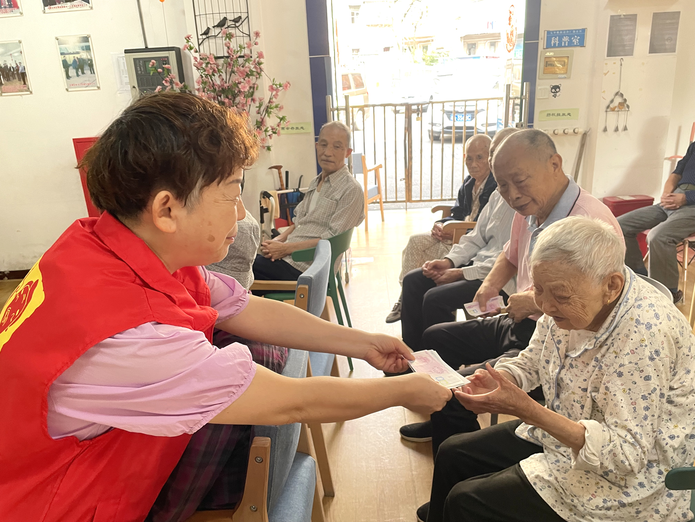 長(zhǎng)者們?nèi)粘5幕顒?dòng)有:擇菜、澆花、養(yǎng)魚、遛鳥、還有各類康樂活動(dòng)、康復(fù)訓(xùn)練等等,他們?cè)?/span>收獲健康、快樂、成就感的同時(shí),也賺到了不少的工資——幸福幣。每個(gè)季度開放一次的幸福銀行兌換日里,爺爺奶奶則可以用自己的“工資”開啟隨心購(gòu)模式,爺爺奶奶們可以用掙到的幸福幣直接在院內(nèi)購(gòu)買生活用品。