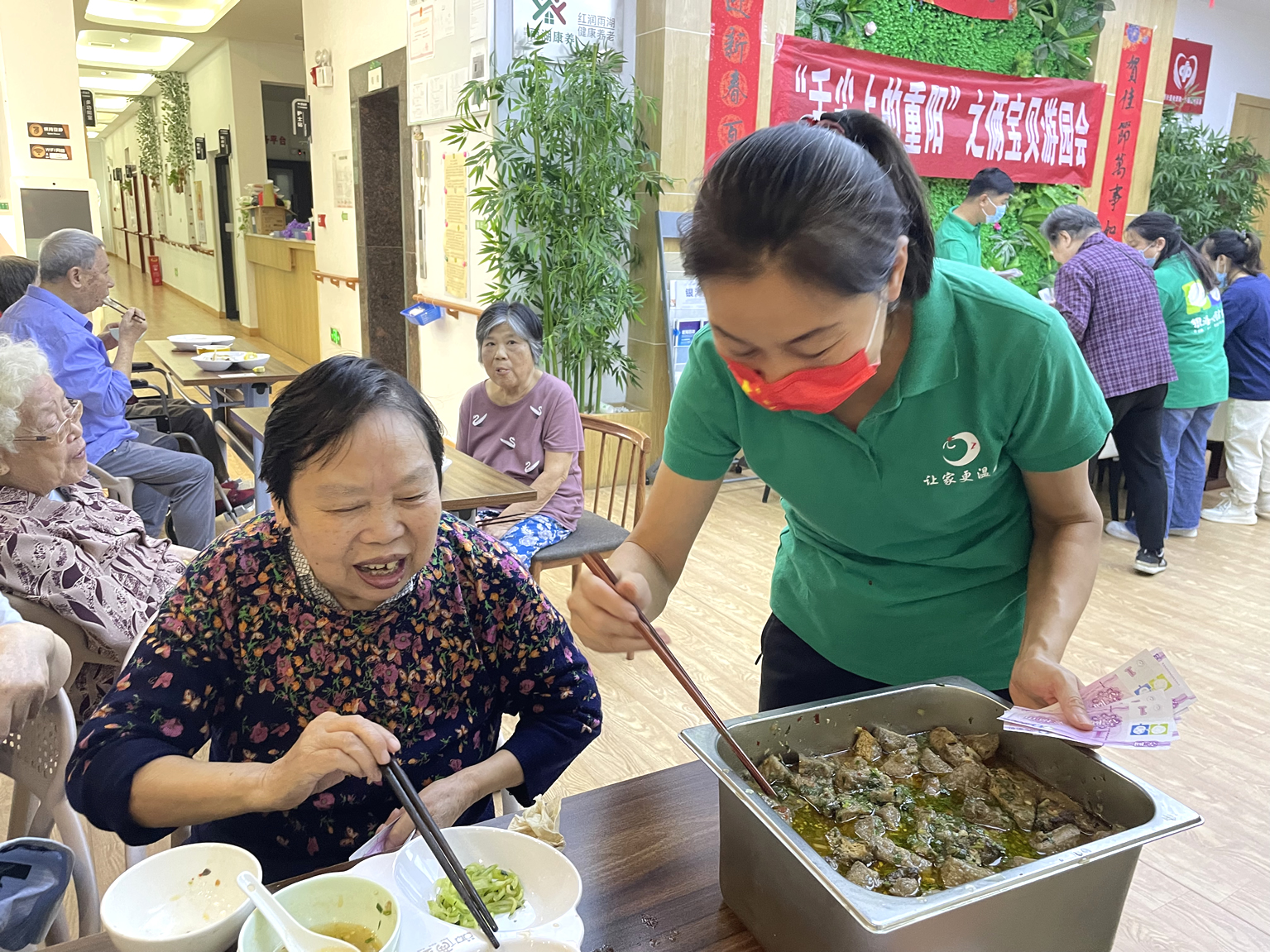 金秋送爽,丹桂飄香。一年一度的國(guó)慶、重陽(yáng)一不小心撞了個(gè)滿懷!銀海倆寶貝為豐富入住長(zhǎng)者的精神文化生活,特在近日舉辦了為善養(yǎng)老幸福銀行換購(gòu)活動(dòng)和“舌尖上的重陽(yáng)”美食園游會(huì)活動(dòng)。