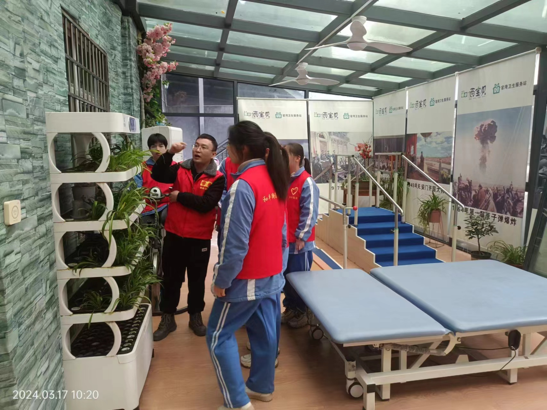接下來同學(xué)們跟隨窯灣照護(hù)中心“知心大姐姐”偉偉照護(hù)長(zhǎng)的腳步參觀并逐一慰問了各樓層的爺爺奶奶,孩子們對(duì)照護(hù)中心的房間環(huán)境及各種完善設(shè)施稱贊不已。同學(xué)們?cè)趨⒂^陽(yáng)光房里各種健康設(shè)施尤其是自動(dòng)種菜機(jī)時(shí),尤為興致高昂。